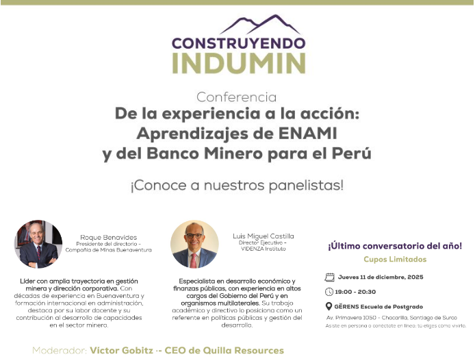 Este 11 de diciembre tendremos un encuentro imperdible donde exploraremos las lecciones clave de dos referentes históricos de la minería en la región. Un espacio para entender, reflexionar y proyectar el futuro institucional minero del Perú.