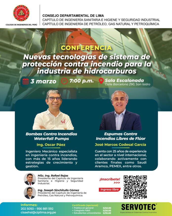 El Capítulo de Ingeniería Sanitaria e Higiene y Seguridad Industrial – CIP Lima tiene el agrado de invitar a participar en la conferencia: