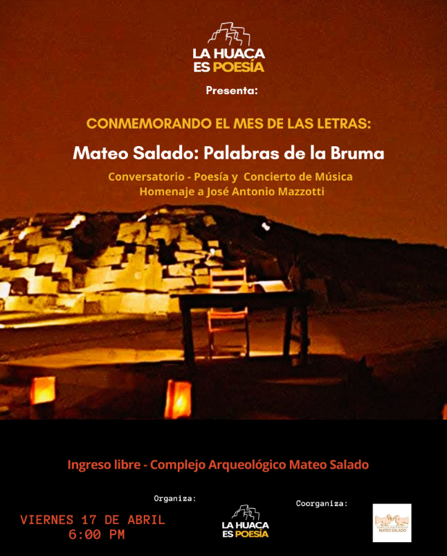 La Huaca es Poesía presenta en abril, mes de las letras: “Mateo Salado: Palabras de la Bruma” conversatorio, poesía y concierto de música.