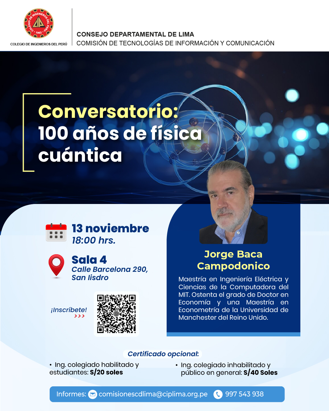 Únete al Conversatorio: 100 años de física cuántica con Jorge Baca Campodónico, experto con estudios en el MIT y la Universidad de Manchester