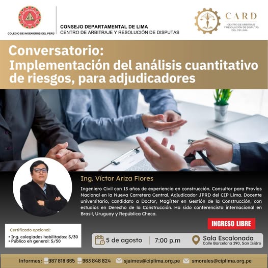 Conversatorio: “Implementación del análisis cuantitativo de riesgos, para adjudicadores” / 5 agosto – 7:00 p.m.