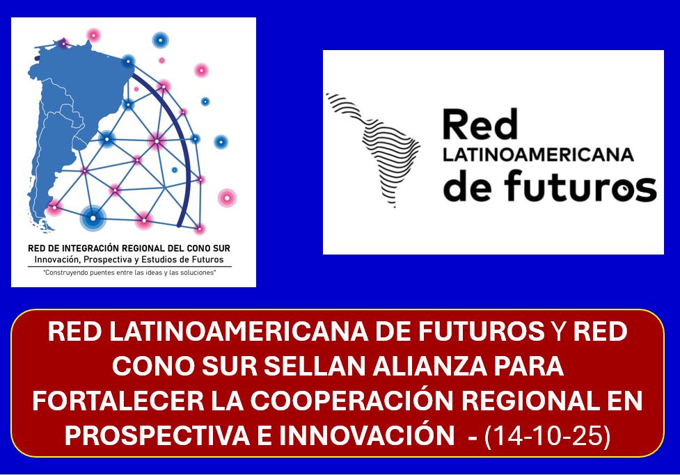 El próximo martes 14 de octubre de 2025, a las 18:00 horas (Paraguay), se realizará la firma oficial del Memorándum de Entendimiento entre la Red Latinoamericana de Futuros (RLF) y la Red Integración Regional Cono Sur de Innovación, Prospectiva y Estudios de Futuros.