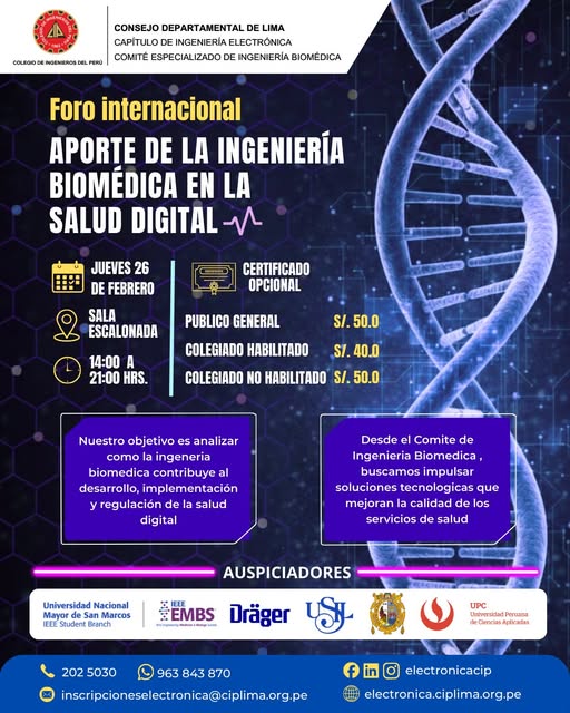 El Capítulo de Ingeniería Electrónica mediante su Comité Especializado de Biomédica los invita a participar
