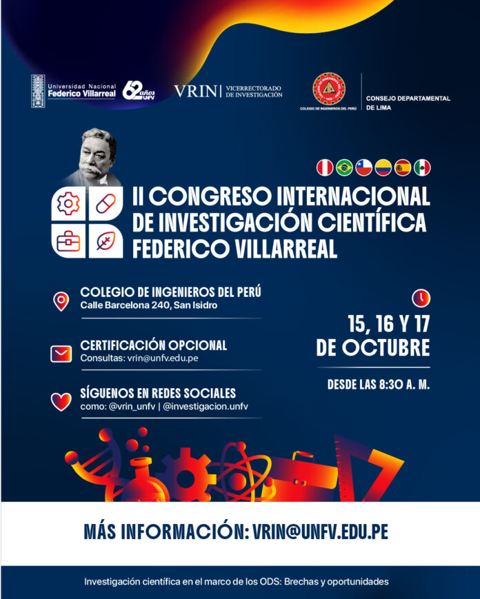 La Universidad Nacional Federico Villarreal, a través del Vicerrectorado de Investigación (VRIN), en alianza con el Consejo Departamental de Lima del Colegio de Ingenieros del Perú, organiza el II Congreso Internacional de Investigación Científica Federico Villarreal.