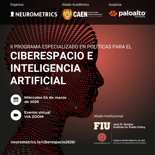 Tras el rotundo éxito de su primera edición, llega el II Programa Especializado en Políticas para el Ciberespacio e Inteligencia Artificial, una iniciativa académica conjunta de Neurometrics y el CAEN, con el respaldo del Capítulo de Ingeniería Electrónica, el Jack D. Gordon Institute for Public Policy y el auspicio de Palo Alto Networks.