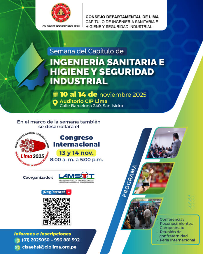 El Capítulo de Ingeniería Sanitaria e Higiene y Seguridad Industrial – CISAEHSI del Colegio de Ingenieros del Perú – Consejo Departamental de Lima, tiene el agrado de invitarlos a dos eventos imperdibles, abiertos a todas las especialidades de ingeniería