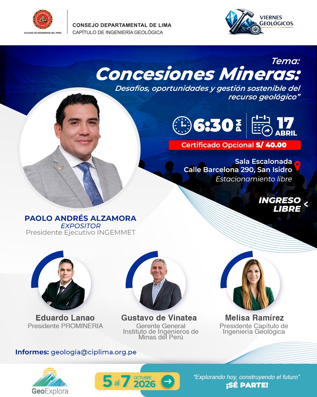 El Capítulo de Ingeniería Geológica del CIP te invita a una nueva edición de Viernes Geológicos con un tema clave: